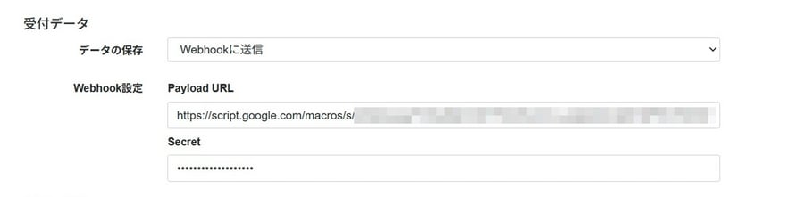 - 「Webhook設定」の [Secret] に、スクリプト プロパティの値を貼り付けます。