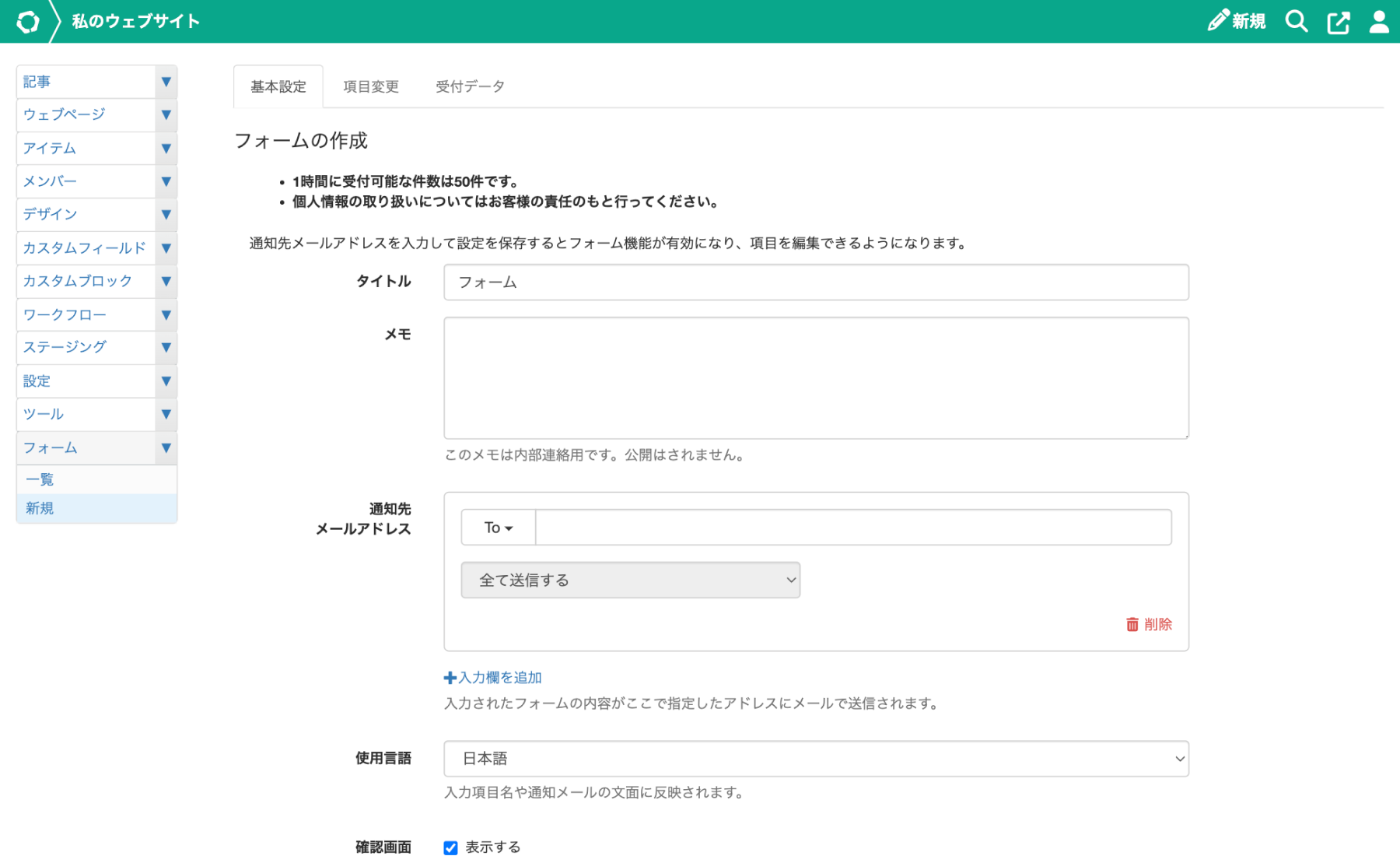 フォームが完成しても、設定ページは閉じずそのままにしておきましょう。この後、設定した内容をいくつか使用します。