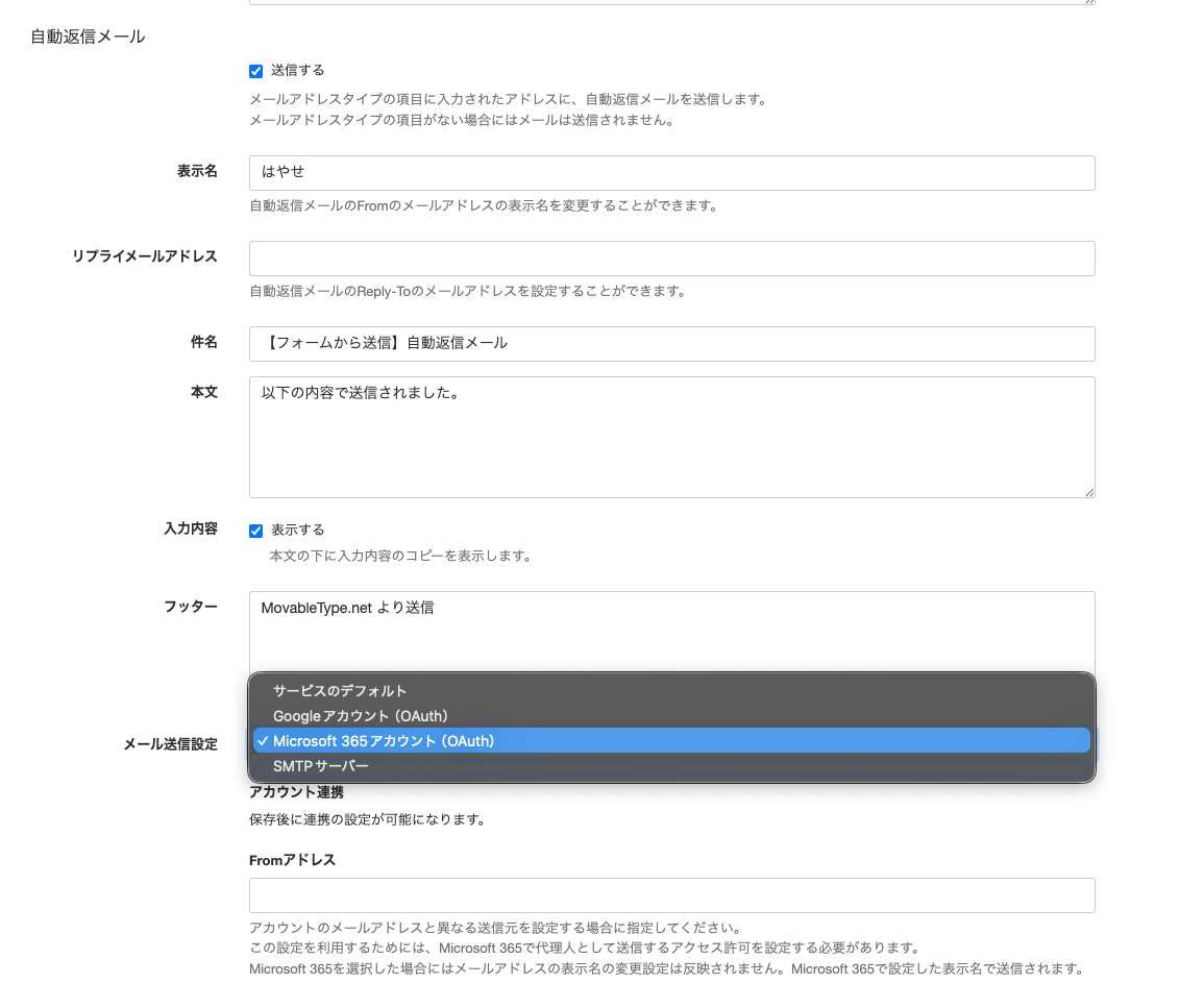 Google / Microsoft 365 のOAuth認証を利用してフォームの自動返信メールのF...