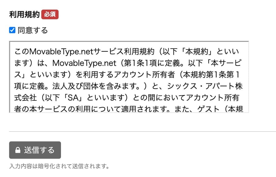 長めの利用規約ならスクロールバーを表示し、短い利用規約ならスクロールバーなしになります。
