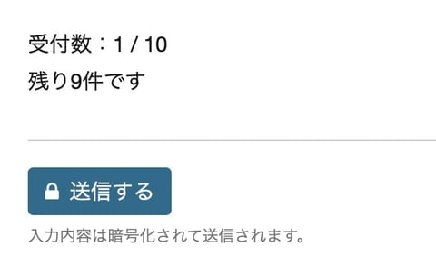 受付制限をかけた際に、実際のフォームにフォームを開いたタイミングの現在の受付件数、受付可能数、残りの受付可能数を表示することができます。