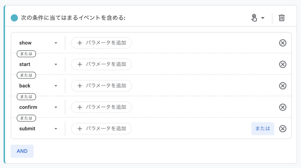 フォームのシステム側では、フォームの表示(show)、操作開始(start)、戻る(back)、確認(confirm)、送信(submit)の5種類のイベントを用意しています。これらのイベントを GA4 で計測するには、カスタムディメンションの設定が必要です。