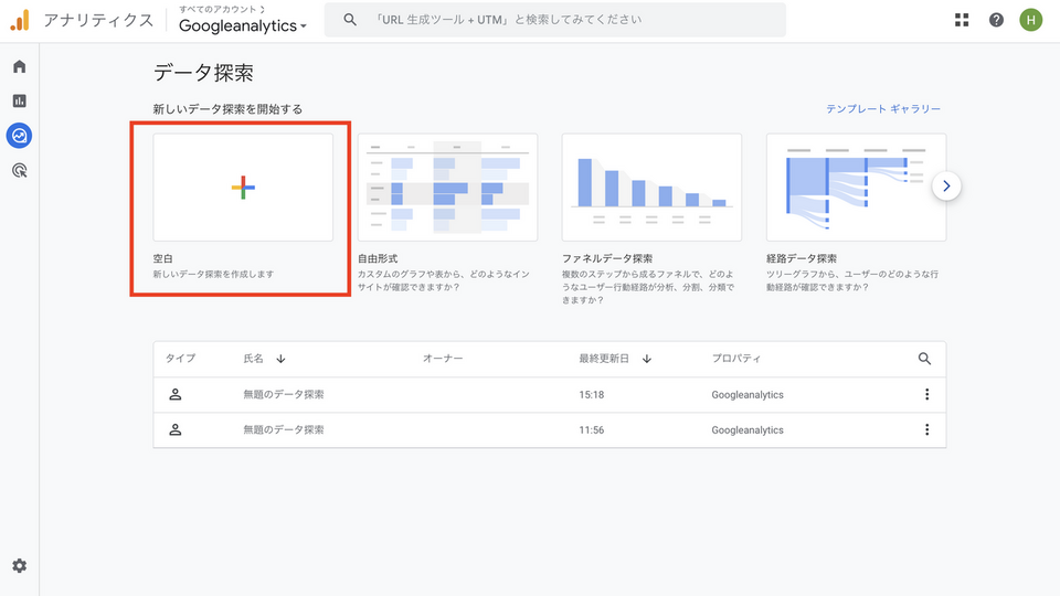 左メニュー [探索] > [データ探索] から「空白」を選択する