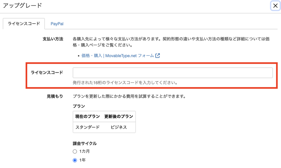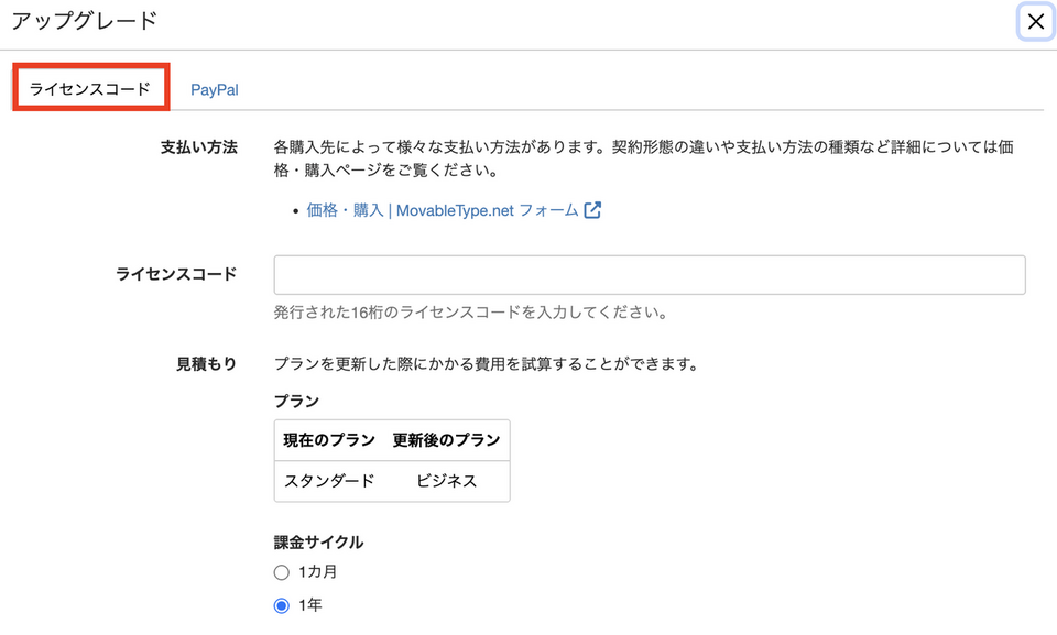 PayPal で購入する場合は、PayPal でのライセンス購入についてをご覧ください。