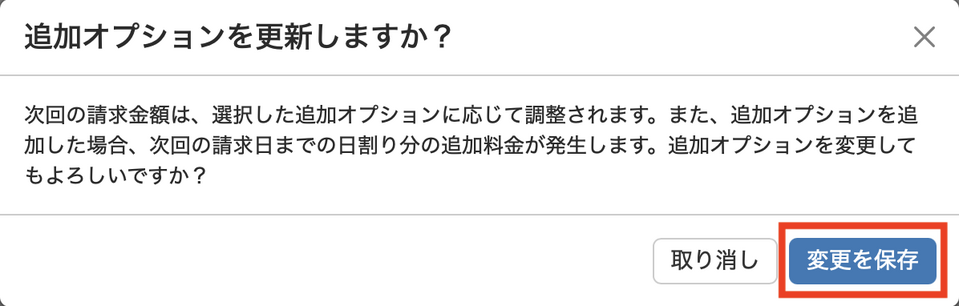 - オプションの追加が完了したら、「変更を保存」ボタンをクリックする