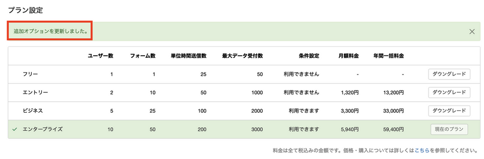 オプションの追加は、エンタープライズプラン以上で可能です。