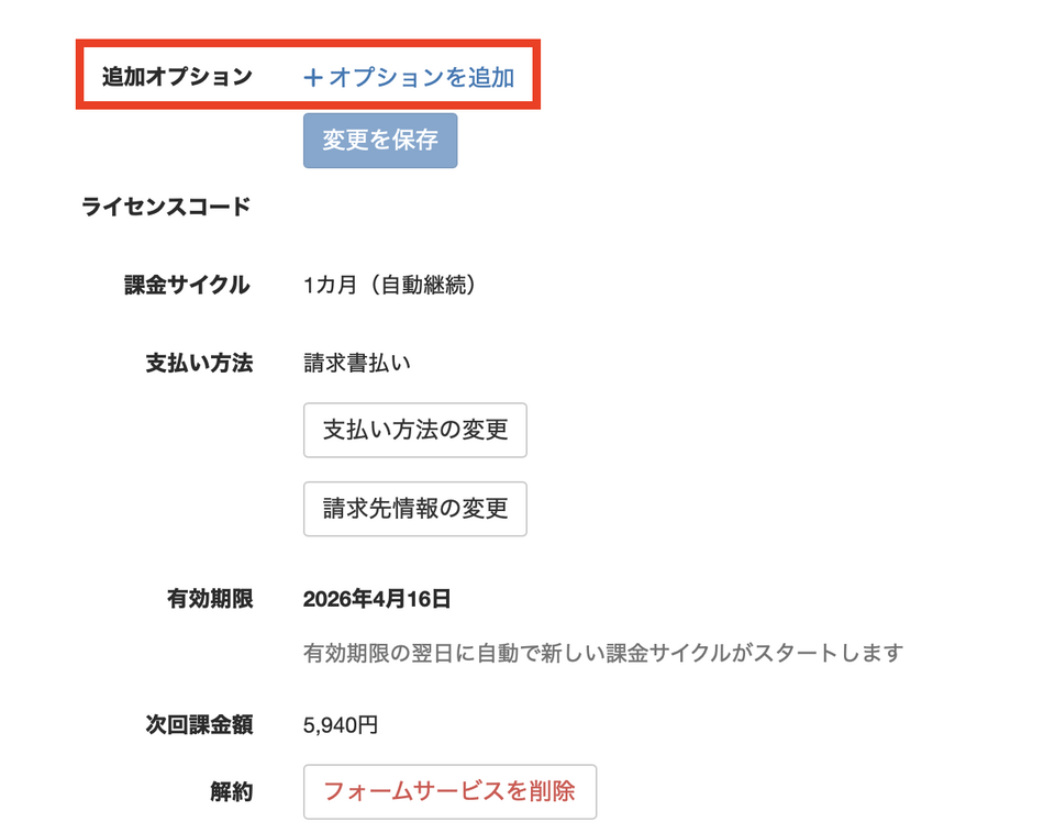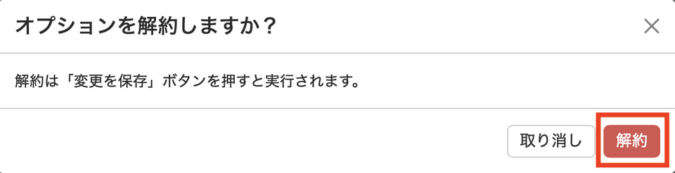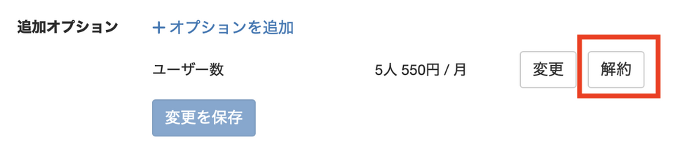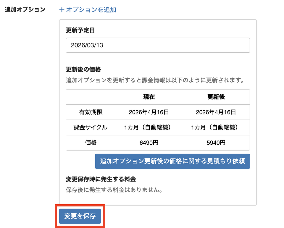 管理画面に「追加オプションを更新しました。」と表示され、オプションの解約が完了します。