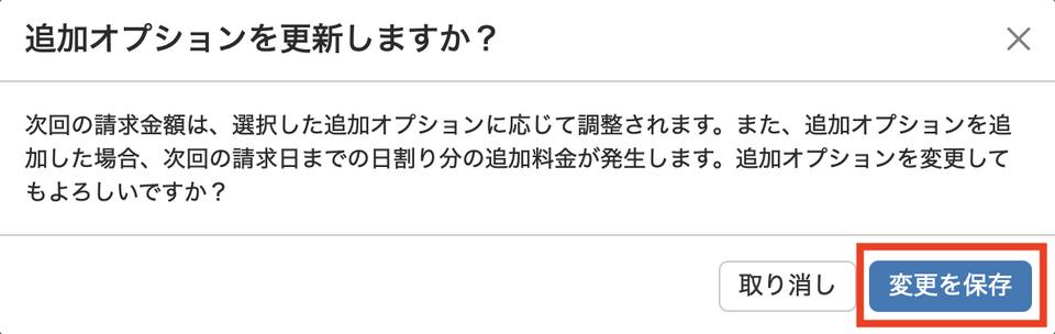 ボタンのクリックでオプションの購入が確定し、ご請求が発生します。