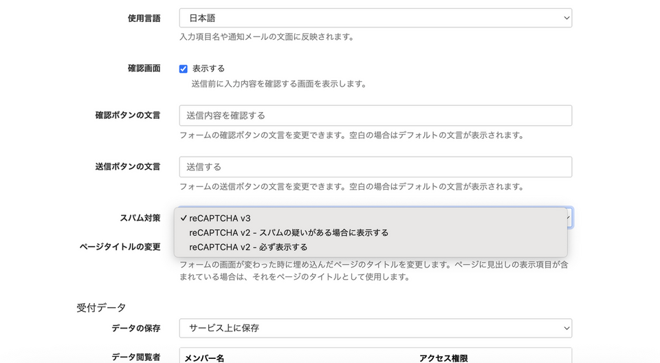 デフォルトでは、「reCAPTCHA v3」が設定されています。