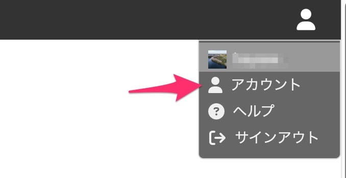 - 管理画面にログイン後、右上の人のアイコンをクリックし、「アカウント」ページへ移動する