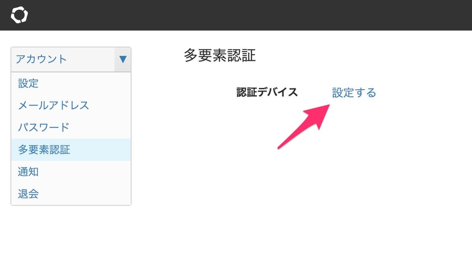 - [アカウント] - [多要素認証] を選択し、「認証デバイス」の「設定する」リンクをクリックする