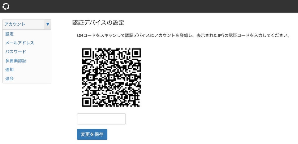 - QR コードを認証アプリで読み込んで登録し、表示された6桁の認証コードを入力する