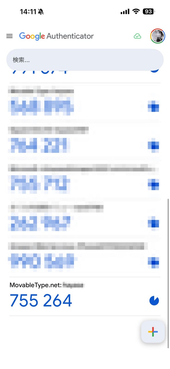 Google Authenticator で QR コードを読み込むと、MovableType.net が追加され以下のように認証コードが表示されます。