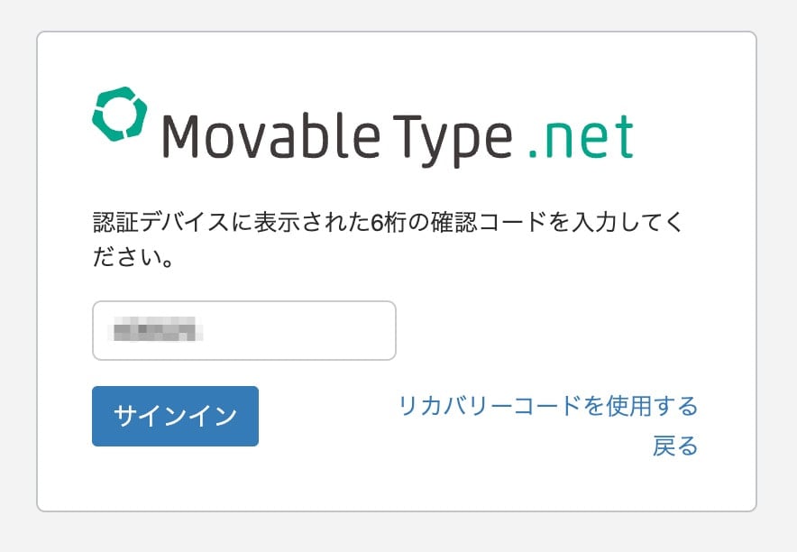 MovableType.net の管理画面にログイン(サインイン)する際、多要素認証を利用できます。