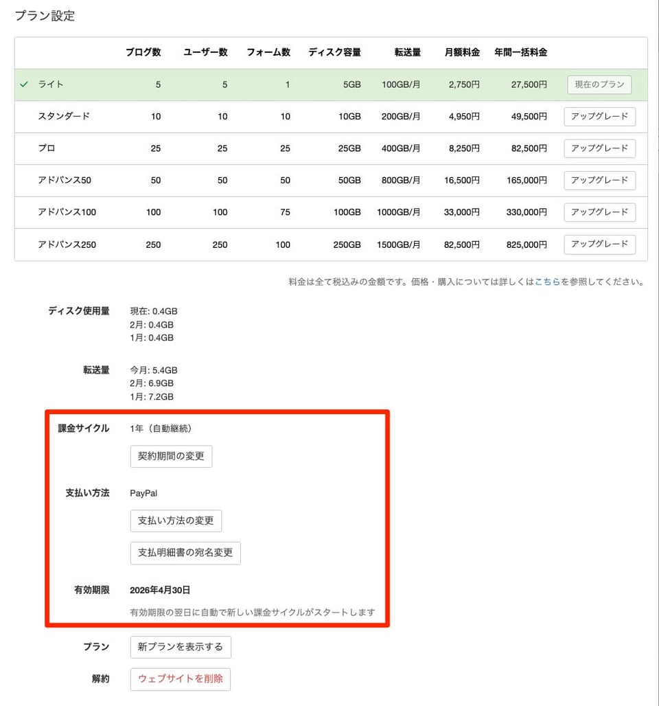 お客様のご契約内容(プラン・契約期間・自動継続)は以下のページでご確認いただけます。